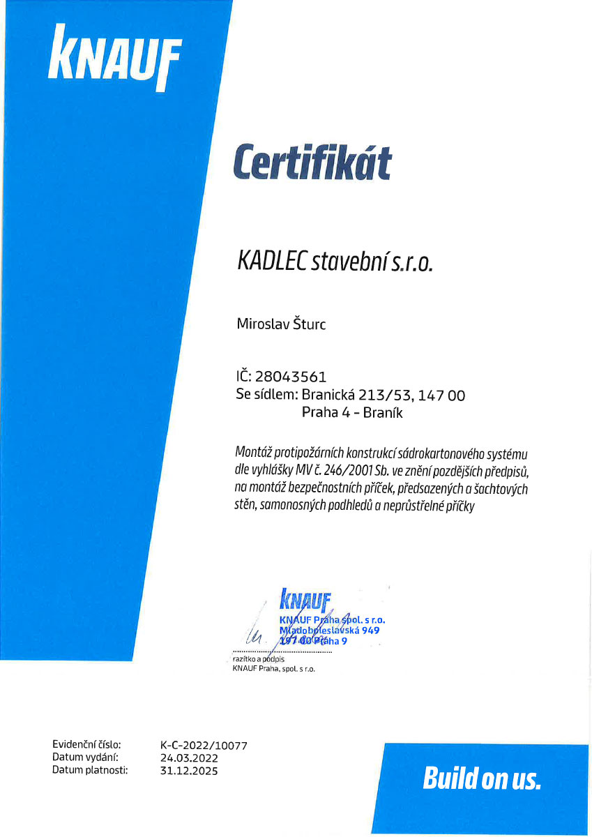 Během řady let našeho působení na trhu získala naše stavební firma mnoho prestižních certifikací. Tyto cenné zkušenosti uplatníme v maximální možné míře při práci na Vašem projektu.